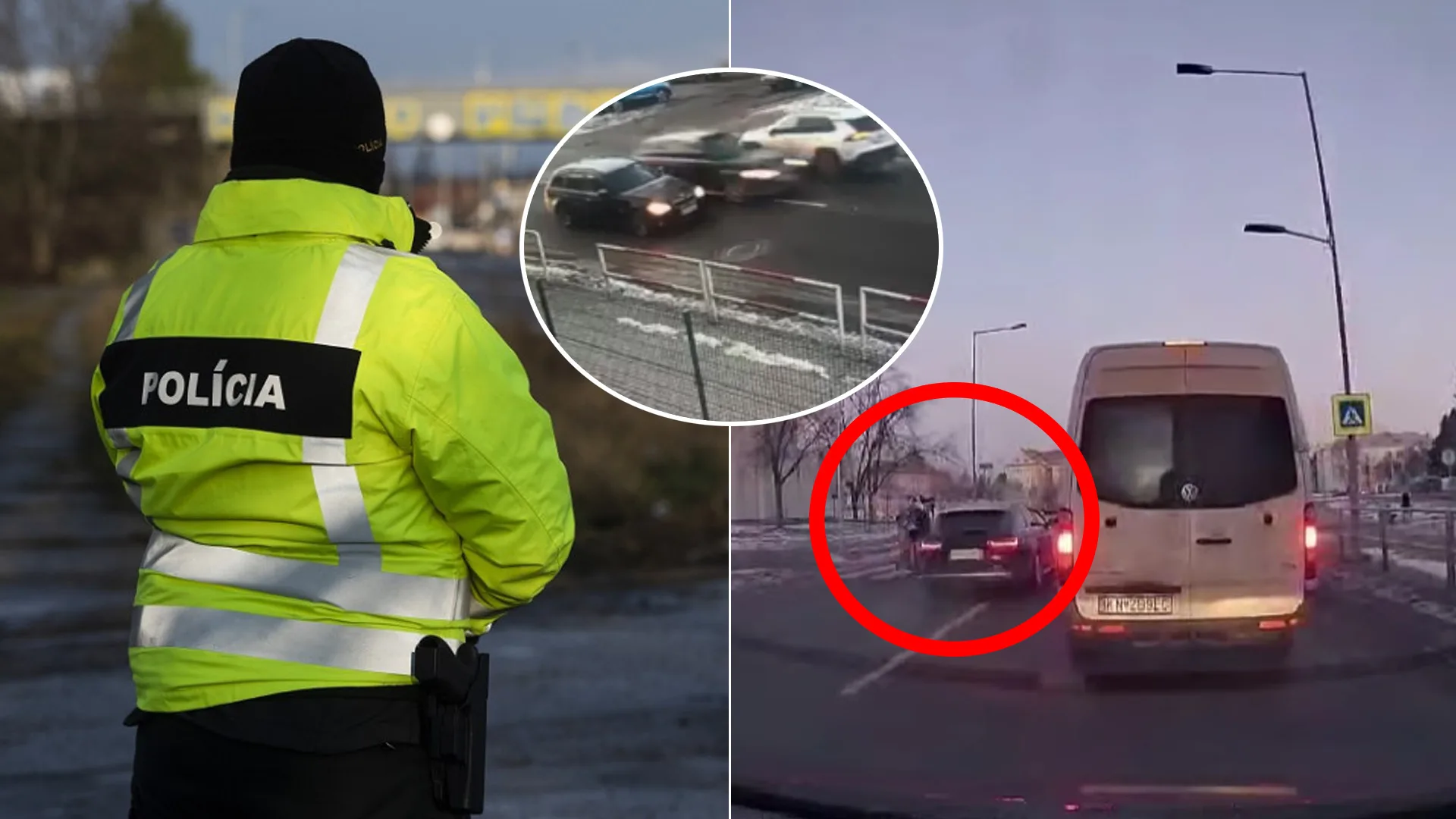 Ilustračná fotografia a zábery desivej jazdy vodiča v Nových Zámkoch. Zdroj: FOTO TASR/Jaroslav Novák, REPROFOTO FACEBOOK / Peter Danczi , REPROFOTO FACEBOOK / Peter Danczi , koláž: istream