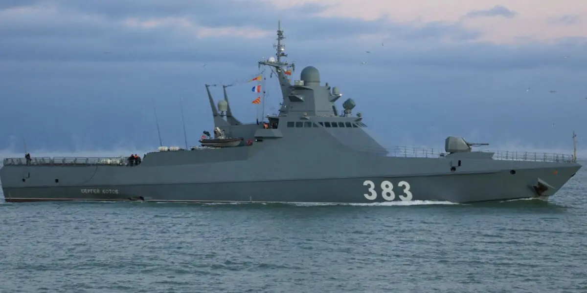 Ukrajine sa v noci podarilo zasiahnuť ruskú hliadkovú loď Sergej Kotov. Zdroj: X/The Kyiv Independent